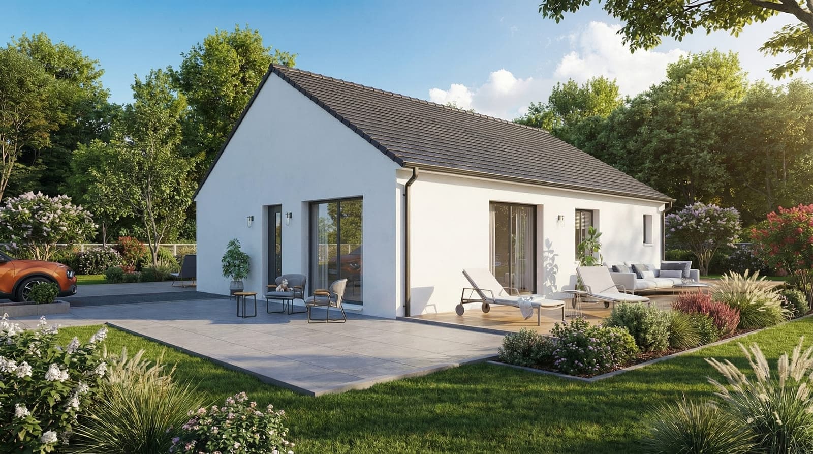 Découvrez les plans 2D et 3D de ce modèle de petite maison neuve plain-pied de notre gamme traditionnelle