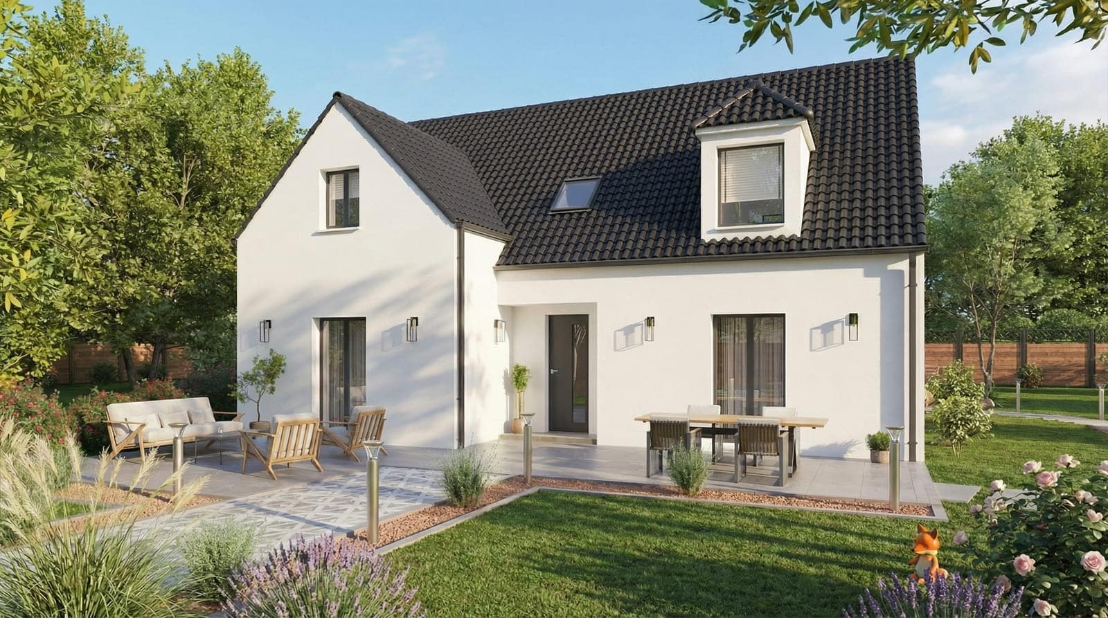 La Maison Haylliere se caractérise également par la présence d’une fenêtre « plein cintre » dans les combles, qui, avec un meneau (sur la version 150 m²) et une lucarne, rythment la façade avant. Si vous êtes à la recherche d’une maison belle, spacieuse et fonctionnelle pour votre famille, ne cherchez pas plus loin que la Maison Haylliere.