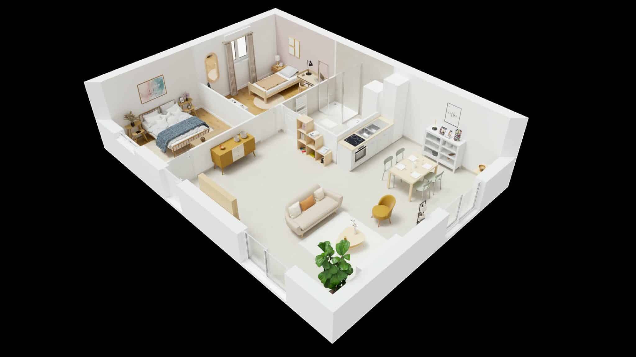 Avec ses 72,5 m² habitables, cette maison propose deux chambres confortables, une salle d’eau fonctionnelle et une belle pièce de vie de plus de 42 m², baignée de lumière et ouverte sur l’extérieur. La conception est claire, efficace, sans superflu, pour répondre aux attentes des familles ou investisseurs en quête d’un bien durable et facile à vivre.