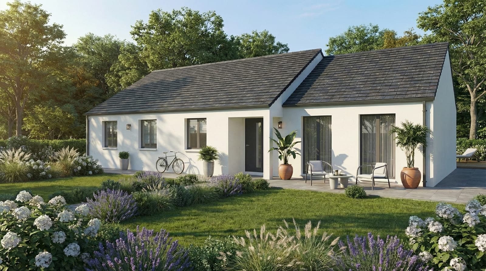 Découvrez les plans 2D et 3D de ce modèle de maison plain-pied de notre gamme traditionnelle