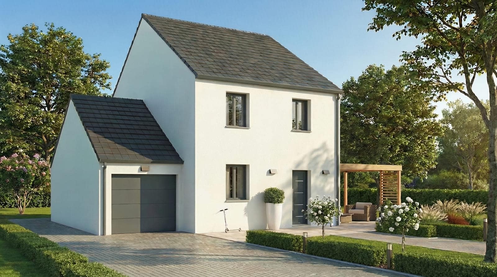 Nous vous proposons cette maison neuve, baptisée Etretaine, une conception architecturale pensée pour s’harmoniser parfaitement avec un terrain étroit, sans pour autant compromettre l’espace et le confort. Avec une surface généreuse de 95 m², cette demeure est l’incarnation même de l’élégance et de la fonctionnalité, offrant un cadre de vie idéal pour ceux qui aspirent à une habitation moderne et économe en énergie.